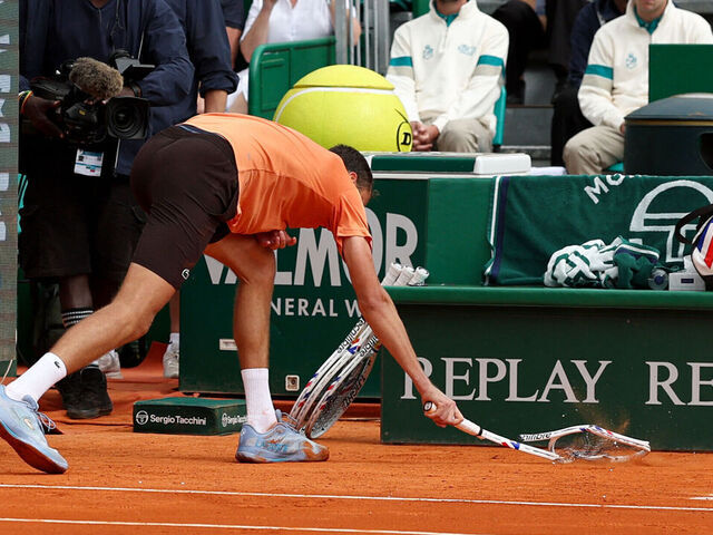 Former No. 1 Daniil Medvedev was fined 6,000 euros ($7,000) for unsportsmanlike conduct after he smashed his racket seven times during a 6-0, 6-0 loss to Matteo Berrettini at the Monte Carlo Masters last week, the ATP Tour confirmed to The Associated Press on Monday.